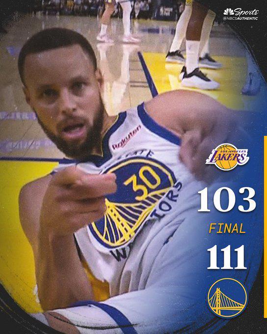 • 勇士111-103湖人,库里14分,穆迪19分,文森特16+5