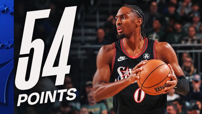 ——4次50+在76人队史排在第4,仅次于张伯伦11次、艾弗森10次、恩比德8次