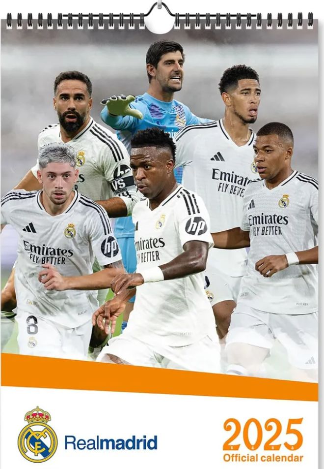 雷速体育10月12日讯 西甲豪门皇家马德里推出了球队2026年官方赛程的日历,售价10.99英镑。封面包括了库尔图瓦、姆巴佩、维尼修斯、巴尔韦德、居莱尔和新援赫伊森。值得注意的是,2025日历中的贝林厄姆本次未出现在封面上,夏窗的重磅新援阿诺德也没能上封面。